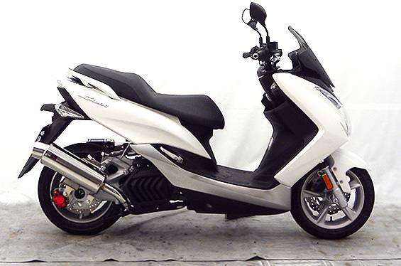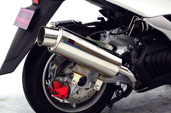 ■受注生産商品となっており、商品手配後 2週間程度入荷にお時間を頂きます。■※平成22年4月1日より施行された認証制度に適合する認証マフラーではありません。ご理解の程よろしくお願い致します。オールステンレス製で、エキパイからサイレンサーまでバフ仕上げを施しています。ビッグスクーターにマッチするようエキパイ径45mm、サイレンサー径120mmの仕様で、装着時の全体的なバランスがとれた仕上がりとなっています。低中速を落とすことなく高回転でスムーズに回り扱いやすい設定になっています。振動防止のためサイレンサーとエキパイが2分割となる安心設計になっています。サイレンサーは、2点止めになっていますのでしっかりと固定でき、耐久性にも優れています。無加工ボルトオンにて装着できますので、必要な工具があれば簡単に取り付けできます。(取り付けに必要なボルト類は全て付属しております。)サイレンサーはストレート構造ではなくフロント部にパンチングを施した作りになっていますので、音量は静かめに抑えられており近所迷惑になる事無く安心して走行できます。バッフル装着時 約85db(法定規制値内音量)バッフル非装着時 約88db