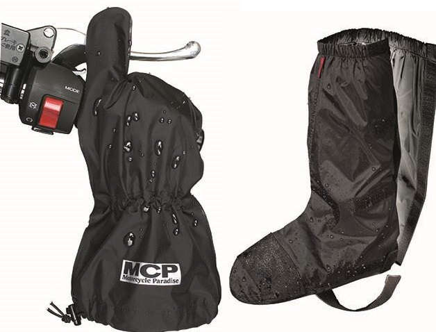 レインスーツ・グローブカバー・シューズカバーがセットになっったレインスーツ: LOR-014 Lグローブカバー: RGC03 フリーサイズシューズカバー: BCT01 フリーサイズ(25~28cm)専用収納袋を付属。グローブカバー革製などの大切なライディンググローブを雨から守るグローブ用カバー。脱着は簡単に行えるので、急な雨でも素早く対応。手のひら側には滑り止めにゴム素材を装備。ナイロン100%、PVC加工。レインスーツシンプルで機能を充実させたモーターサイクル専用のレインスーツ。背中にエアーベンチ、裏地は上下ともにメッシュで通気性をキープ。レインスーツ:ブラック(それ以外のアイテムはすべてブラック)パンツヒップ部に縫い目のない裁断で、水が染み込みにくい。ブラックのみ。シューズカバー靴やブーツを雨から守るライディング専用のシューズカバー。脱着はベルクロとゴムバンドで簡単。スパッツタイプなので、レインを装着した後でも手軽につけれる。チェンジペダルの当たる足の甲部は強化ナイロンでカバー。靴底面にも滑り止めにゴム素材を装備。ナイロン100%、PVC加工。
