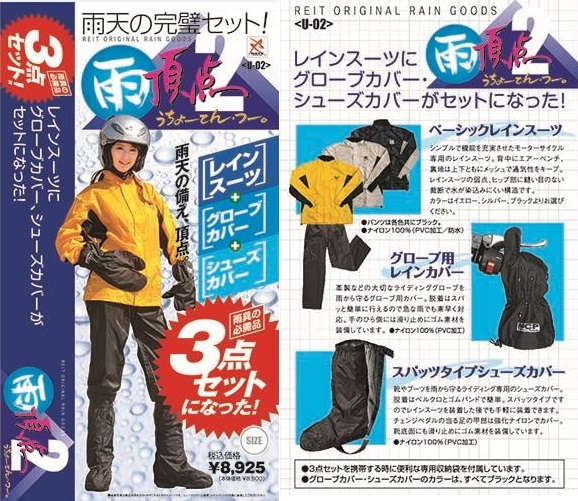 シンプルで機能を充実させたモーターサイクル専用のレインスーツ。