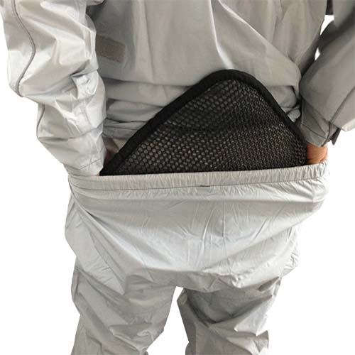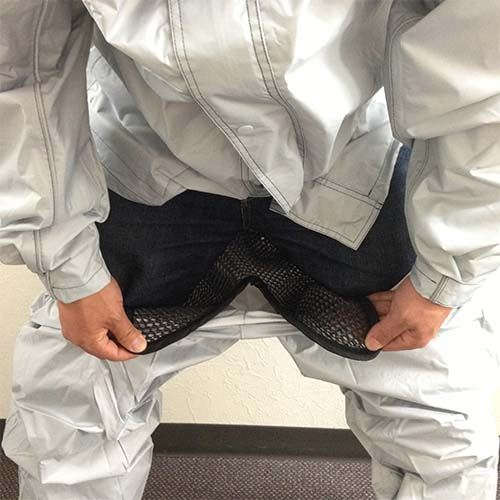 レインパンツからの染み込みや蒸れ等、嫌な“しっとり感”の軽減。