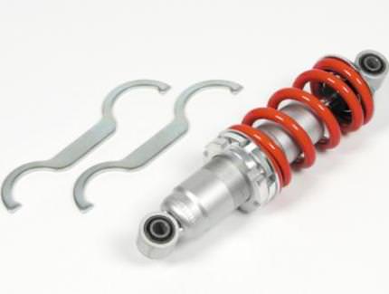 ※1人乗りでも2人乗りでも最適なスプリングに調整可能です。ノーマルと付け替えるだけでストリートからワインディングまで幅広く使用出来るリアショックアブソーバーです。リアショックの減衰力とスプリングバネレートを見直すことで、路面への追従性を高め、スポーツ走行にも対応します。又、タンデム走行に対応する硬さまで、バネレートを調整出来る無段階調整を装備しております。ボディー:シルバー塗装 / スプリング:レッド塗装 スプリングプリロードアジャストレンチ付属。ローダウンタイプではございません。
