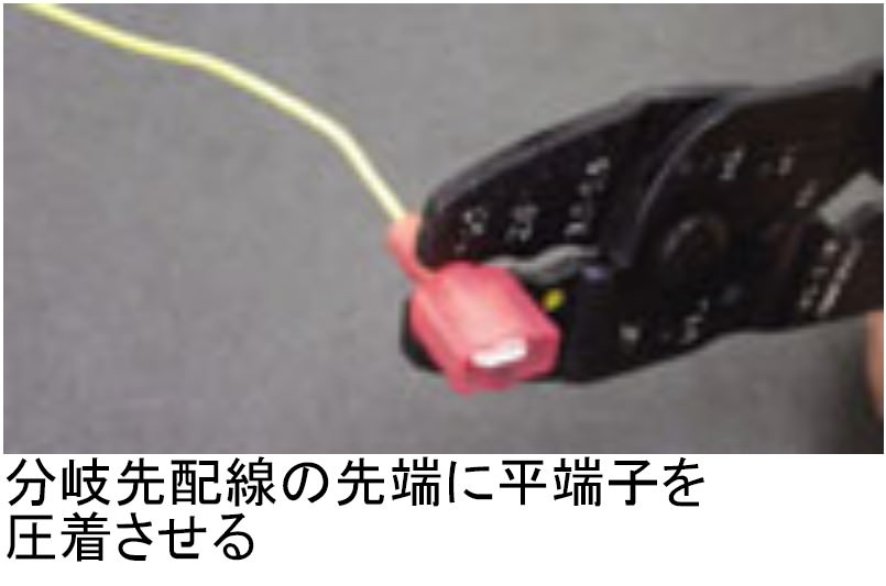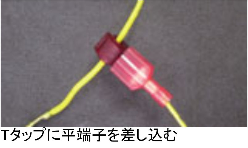 配線を切らずに分岐でき、抜き差し可能とします。・Tタップを配線に合わせ噛み込ませる。・分岐先配線の先端に平端子を圧着させる・Tタップに平端子を差し込む22-18AWG 配線対応