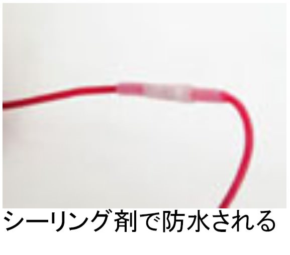 配線の結線と絶縁が簡単に出来る熱収縮チューブです。熱で収縮する際にシーリング材で密着し水の浸入を防ぎます。配線の太さに合わせ3サイズを設定しました。・5mmほど配線をむく・配線を管の中へ入れ、かしめる・デュラルシールを加熱し、収縮させる・シーリング剤で防水される