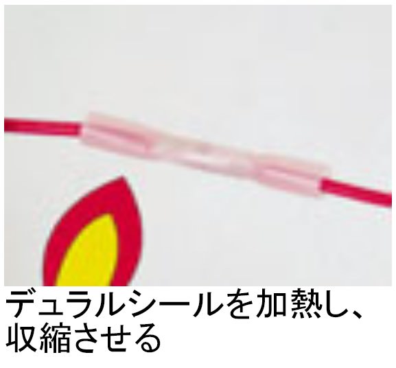 配線の結線と絶縁が簡単に出来る熱収縮チューブです。熱で収縮する際にシーリング材で密着し水の浸入を防ぎます。配線の太さに合わせ3サイズを設定しました。・5mmほど配線をむく・配線を管の中へ入れ、かしめる・デュラルシールを加熱し、収縮させる・シーリング剤で防水される