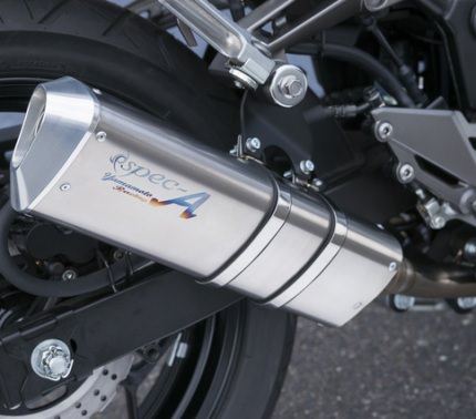 タンデムステップ装着可能、オイル交換、エレメント交換対応。・JMCA認証。政府認証適合(国内仕様のみ)。・サイレンサーサイズ:チタン三角形 350mm。アルミ削り出しエンドキャップ仕様。