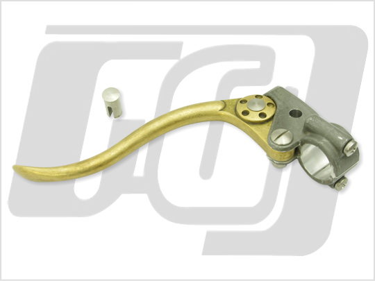 カスタムクラッチレバーです。K-Techデラックスマスターと合わせての使用がオススメです。ブラスRaw仕上げ。※Raw = 表面処理無しケーブル差し込み部はM10-1.0ピッチのネジ山が切られています。※ドラムブレーキに使用の場合はケーブルの太さによりKUS-20-356のケーブルレジスター(穴径約7.5mm)が必要です。