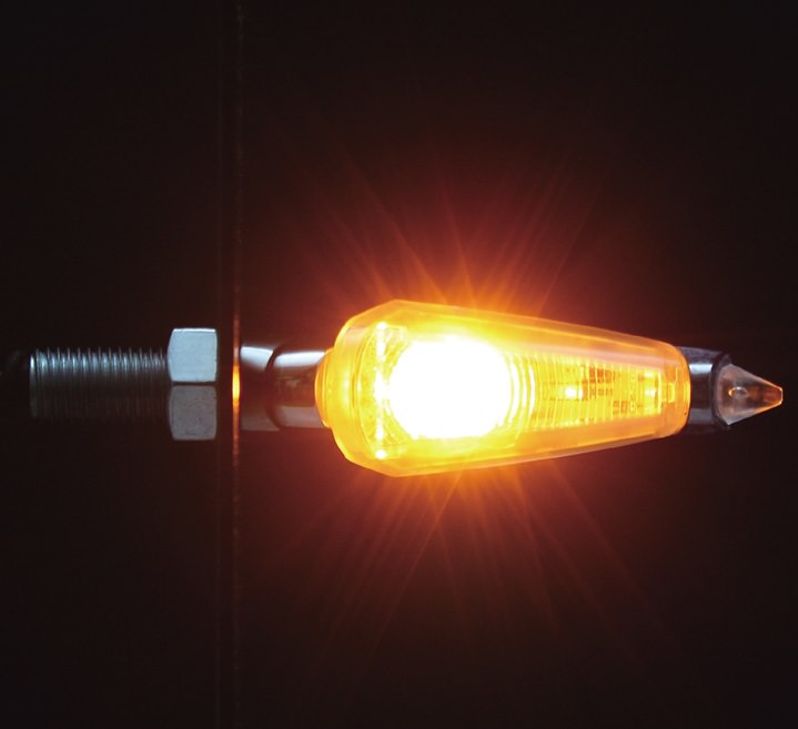※ノーマルマフラーのまま装着可能なウインカー(2個セット)です。最小のスリムボディに高輝度LEDを超えるハイパワーLED(12V2W)を装着。ボディはアルミ製通常の電球使用車に取り付ける場合には別売りのICウインカーリレー(品番:HA6831)が必要になります。レンズ及びLEDのみの交換はできませんので、取付作業時ショートなどにお気を付けください。取付ボルトサイズ・ボルト長:M10×P1.25・16mm長