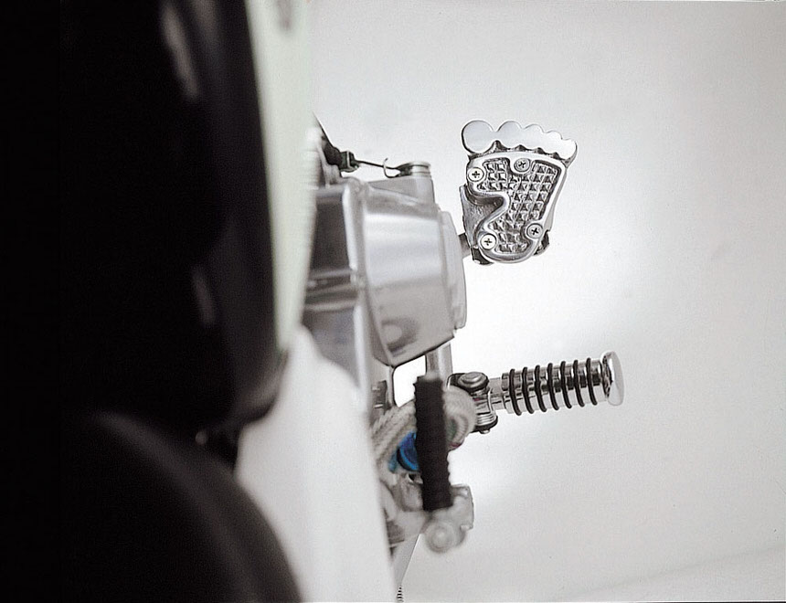アメリカン独特のつま先を開くライディングスタイル時でも、的確にペダル操作が行える様に大型化したペダルカバーです。アルミ製で表面に滑り止め加工を施しました。