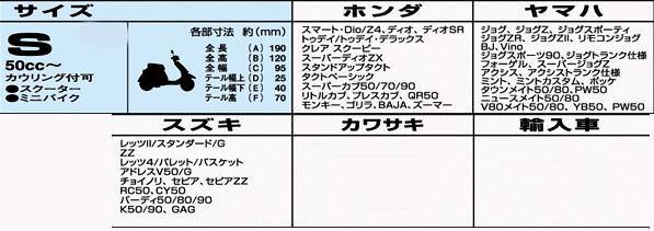 全長:約190cm、全高:約120cm、全幅:95cm、テール幅(上):25cm、テール幅(下)40cm、テール高:70cm