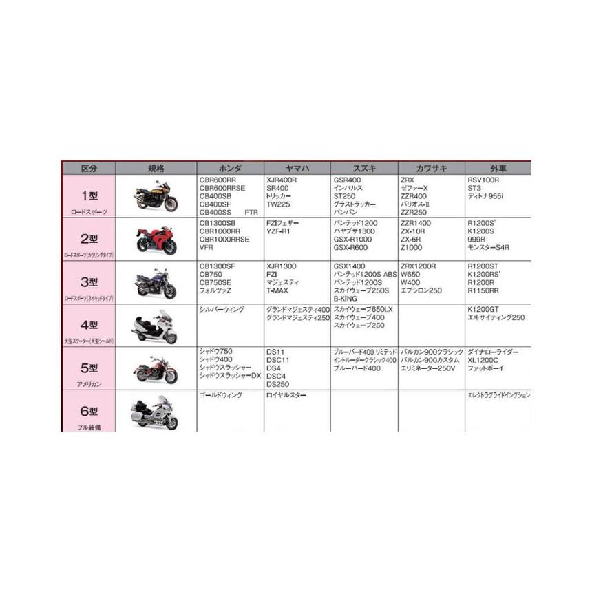 ※画像は参考画像です。車体をすっぽり包み込む。新発想のフルカバードバイクカバーバイクをすっぽりと包み込むカバーです。カバーの上部に透湿性の高い生地を使用し内部のムレを防ぎます。紫外線、黄砂、ほこりをシャットアウト。ネコの侵入防止。程良い位置でファスナーの開閉が出来る為カバーの装・脱着作業がスムーズにできる。透湿性の高い生地を使用シート上部に透湿性生地を使用し、内部のムレを防ぎます。サイドベルトを採用サイドベルトにより、風によるバタツキを軽減します。らくらく装着&脱着程良い位置でファスナーを開閉し、カバーの装・脱着作業を楽に行うことができます。使用生地:カバー上部:ポリエステル100%オックス生布/防炎加工品とシルバーコーティング加工品ポリエステル100%テクノ生布/4層構造、2枚重ねグレー色(透湿性高い)カバー下部:ポリエステル帆布6号、グリーン色/ファスナー本体・#10番手(大きく開閉し易い)/ファスナー後部・#5番手、ブラック色/ゴムマット装着手順:1下部シートにマットを敷きバイクをライン上に乗せます。2カバーを上から掛けファスナーを閉じます。3後部ファスナーも閉じマジックを利用しふたをします。4風によるバタツキ防止の為、サイドよりベルトで止めます。5完成です(尚、盗難防止の為鍵は必ずかけて下さい)。全長(cm):全高(cm):全幅(cm):リア幅(cm)251:155:110:105【参考適合車種】ホンダ:シャドウ750、シャドウ400、シャドウスラッシャー、シャドウスラッシャーDXヤマハ:DS11、DSC11、DS4、DSC4、DS250スズキ:ブルーバード400リミテッド、イントルーダークラシック400、ブルーバード400カワサキ:バルカン900クラシック、バルカン900カスタム、エリミネーター250Vダイナローライダー、XL1200C、ファットボーイ
