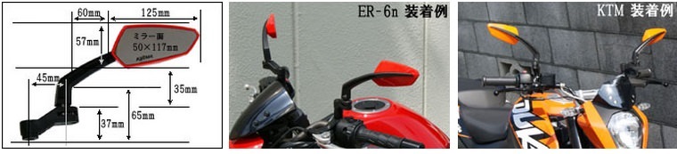 正ネジ8・10mm×各2本 逆ネジ8・10mm×各1本ソリッドカラーが多くの車体にマッチします。無機質なクロームメッキも存在感をアピール。ボールエンドでの微調整とミラーホールへの取付部のオフセットでイメージに近い場所への取付が可能です。保安基準適合外。また、トレッドGグリップと共に車体色に合わせたトータルコーディネートも可能に。カラー:メッキミラー面サイズ:50×117mm