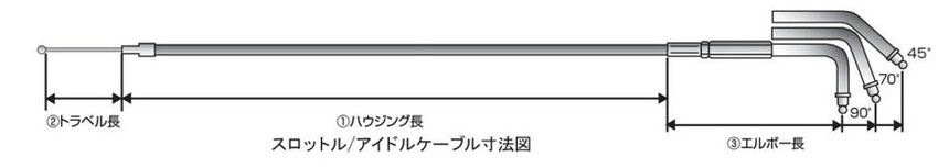 スロットルケーブル(引き側)スタンダード ハウジング長880mm エルボー角度45° KIJIMA(キジマ) スポーツスターS&S SUPER E&G(96〜06年)