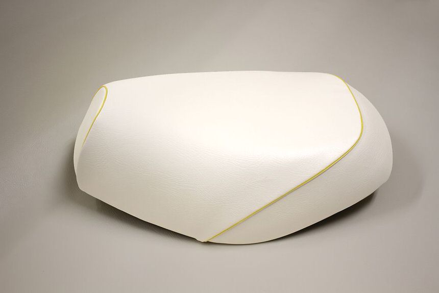 張替タイプ 国産シートカバー 白カバー・黄色パイピング GRONDEMENT(グロンドマン) レッツ(Let's)CA1KA(給油口タンク中仕様)