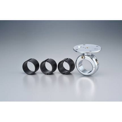 コンパクトにハンドルクランプへ固定するタイプです。ハンドル面に取り付けるのに最適です。スペーサーの使用で4サイズのパイプにも対応。TOPプレート下とクランプ上部で無段階に位置を調整可能。(360度)センターでの固定か18mmオフセットが可能です。GarMinZuMo550固定対応の4ホール+6mm穴設定。ラウンドトッププレート:直径59.5mm。クイックチェンジアダプターはTM-360003をご使用下さい。