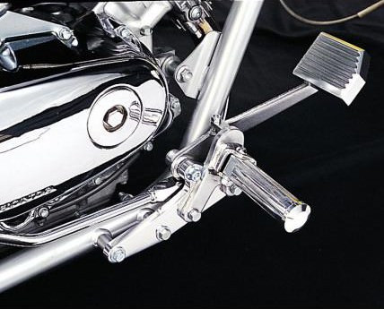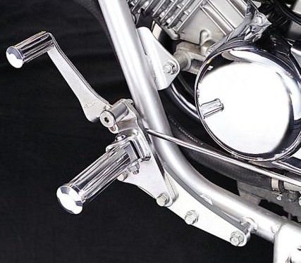 ロングクルージングで疲れない本格派アメリカンチョッパースタイルに!プルバック系ハンドルとの組合わせで、より一層効果あるポジションが完成します。ノーマルのステップホルダーにボルトオン。ペダルの高さ調整可。100mmフォワード 30mmアッププレートはジュラルミン削り出し ポリッシュアルマイト