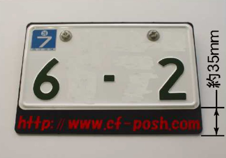 ステッカー、リフレクターは含まれておりません。中型/大型二輪車用。ナンバー下部に35mmのステッカー貼付スペースを確保。