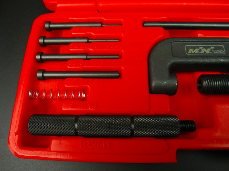 このチェーンカッターはセミプロ向けの耐久性に優れたクオリティです。様々な車種に対応できるチェーンカッターとカシメ工具が一箱に収納されています。専用収納ケースにすべてのパーツが整然と収納されています。【内容】チェーンカッター、レバー、ハンドル、ホルダー、アライメントボルト、プッシュボルト、アッパーガイド