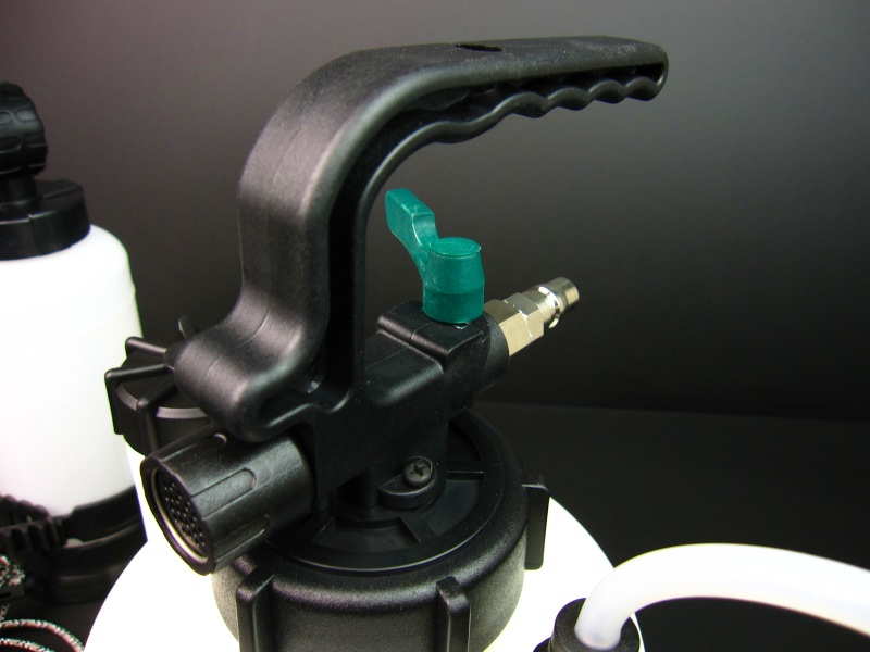 通常の圧縮空気を使用するので、一人で簡単にブレーキブリーディングやエア抜きが出来ます。コンプレッサー圧力を表示可能な圧力ゲージ付きです。専用のブレーキオイルタンクのキャップが無くても、素早くきれいな作業が可能です。フルードを漏らす事無く、古いオイルの抜き取りや新しいオイルへの完全入れ換えが出来ます。消音サイレンサー付きです。補充ボトルの底にマグネットが付いているので、ボディー部分のどこにでもセット可能です。【内容・仕様】ボトル PEノズル ゴムホース シリコン接続口径 PT 1/4インチ【仕様】ブレーキフルードブリーダー 3L補充ボトル 1L使用空気圧力 0.5~0.8mPa