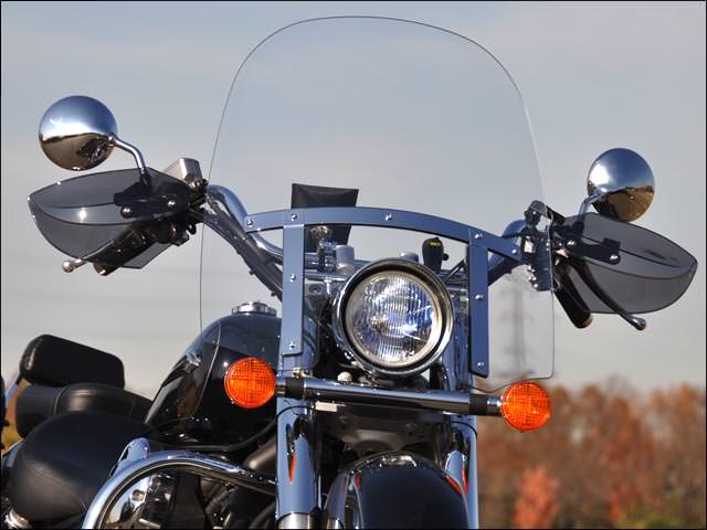 装着画像はHONDA純正ウインドシールドとの同時装着例です。商品には付属しておりませんのでご注意下さい。※フロントブレーキホースなどハンドル周りに変更を加えている場合、ブレーキホースの固定方向によりガントレット本体に干渉する場合があります。走行風よりライダーの拳や指先を保護するナックルガード。シールド本体はポリカーボネイト製です。十分な強度をもたせた取付けステーは高い風圧を受けてもガタツキが出ないように考慮された形状を持ち、左右のミラーに共締めするだけのボルトオン設計です。※シャドウクラシックに合わせて設計された専用品です。シャドウ カスタムにはお取付できません。※純正オプションの「ウインドシールド」との同時装着も可能です。【取付方法】クラッチ側はホルダーの隙間にステーを差し込むことで回り止めとしています。ブレーキ側はマスターシリンダーの形状に合わせたステー形状。回り止めの役目を果たします。