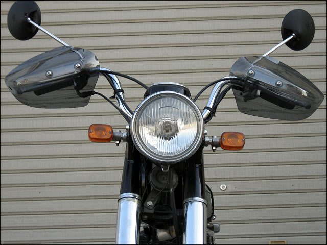 ※フロントブレーキホースなどハンドル周りに変更を加えている場合、ブレーキホースの固定方向によりガントレット本体に干渉する場合があります。走行風よりライダーの拳や指先を保護するナックルガード。シールド本体はポリカーボネイト製です。取付けステーは高い風圧を受けてもガタツキが出ないように考慮された形状でノーマル車両にボルトオン設計です。※ベンリィCD50/90にも対応しています。