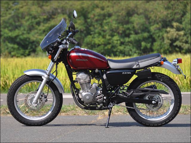 ※本商品はクリアタイプです。画像はスモークタイプですので、ご注意下さい。エアプロテクションとスタイリングを高い次元で両立した角度調整機構付きウインドシールド。スクリーンとFRP製インナーステーを組み合わせる事で、スクリーンの剛性を高めると同時に、独創的なフロント周りを演出します。トップブリッジ上の操作により、走行条件に合わせたスクリーン角度を無段階に調整することが可能。左右のラバーマウントと角度調整ユニットの3点マウントにより、高速走行にも対応した設計です。スクリーン本体は3mm厚ポリカーボネイト製(ハードコート仕様)。ライト左右のボルトは8mm、ライト径の小さいCB223S専用品です。【スクリーンサイズ】・サイズ:L・高さ:415mm・幅:425mm