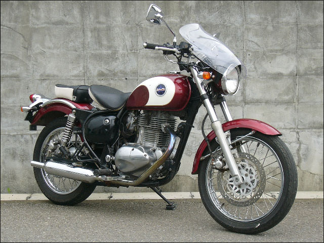 エアプロテクションとスタイリングを高い次元で両立した角度調整機構付きウインドシールド。スクリーンとFRP製インナーステーを組み合わせる事で、スクリーンの剛性を高めると同時に、独創的なフロント周りを演出します。トップブリッジ上の操作により、走行条件に合わせたスクリーン角度を無段階に調整することが可能。左右のラバーマウントと角度調整ユニットの3点マウントにより、高速走行にも対応した設計です。スクリーン本体は3mm厚ポリカーボネイト製(ハードコート仕様)。ライト左右のボルトは8mm、ライト径の小さいEstrellaに対応したものです。【スクリーンサイズ】・サイズ:M・高さ:395mm・幅:410mm