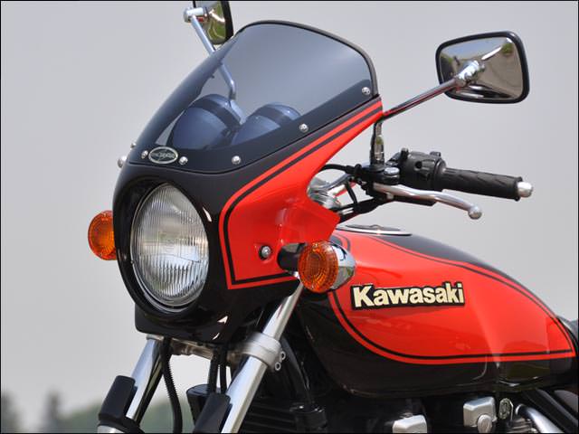 ■通常3週間1ヶ月程度入荷にお時間を頂きます。■※画像は参考です。商品の仕様に関しては、商品説明をご参考下さい。やや丸みを帯びたスタンダードなデザインのビキニカウル。各純正色塗装に対応し、高い整流効果と精悍なスタイリングを得ることができます。ゼファーに合わせたカットラインを持ち、ノーマルライトにボルトオンで装着可能。ライト左右ラバーマウント、下部リジットマウントの3箇所での確実な固定を実現しています。カウル本体はFRP多層構造、裏面サフェースマット仕上げ。【仕様】・スクリーンカラー:スモークスクリーン・カウル塗装色:エボニー/キャンディプラズマブルー(火の玉)18L・スクリーンタイプ:通常スクリーン