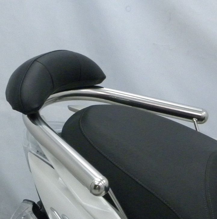 ■受注生産商品となっており、商品手配後 2週間程度入荷にお時間を頂きます。■今、ローダウンはスクーターカスタムの定番となっておりますが、そのローフォルムに合わせて出来るだけ車体全体を低く見せるために、車体との一体感を追求したタンデムバーを開発いたしました。車体に沿うように低くデザインされているのでボディラインにフィットし、かつ極太の38mm径のステンレスパイプを採用しましたので、存在感、目立ち度は抜群です。仕上げはバフ掛けを施していますので、高級感タップリでドレスアップには最適の逸品です。バーが極太なので、パッセンジャーが握りやすく力を入れやすいので、安全性も高くなっております。オリジナルバックレストは型から興して製作していますので、見た目も良く耐久性に優れるしっかりとした作りになっています。ラージサイズ と スモールサイズ の 2サイズ をご用意しておりますので、お好みに応じて選択して頂けます。