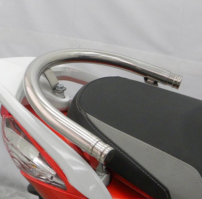 ■受注生産商品となっており、商品手配後 2週間程度入荷にお時間を頂きます。■今、ローダウンはスクーターカスタムの定番となっておりますが、そのローフォルムに合わせて出来るだけ車体全体を低く見せるために、車体との一体感を追求したタンデムバーを開発いたしました。車体に沿うように低くデザインされているのでボディラインにフィットし、かつ極太の32mm径のステンレスパイプを採用しましたので、存在感、目立ち度は抜群です。仕上げはバフ掛けを施していますので、高級感タップリでドレスアップには最適の逸品です。材質は、耐久性、耐腐食性の高いオールステンレス製です。仕上げはバフ掛けを施していますので、高級感タップリでドレスアップにも最適の逸品です。