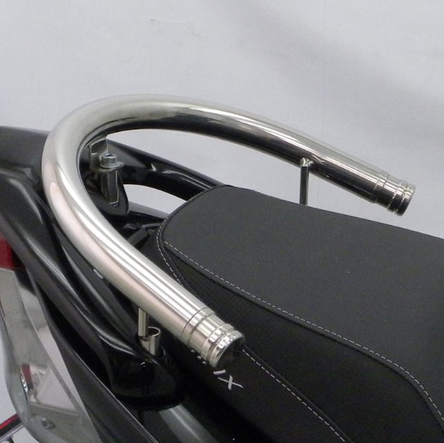 ■受注生産商品となっており、商品手配後 2週間程度入荷にお時間を頂きます。■出来るだけ車体全体を低く見せるために、車体との一体感を追求したタンデムバーを開発いたしました。車体に沿うように低くデザインされているのでボディラインにフィットし、かつ極太の32mm径のステンレスパイプを採用しましたので、存在感、目立ち度は抜群です。仕上げはバフ掛けを施していますので、高級感タップリでドレスアップには最適の逸品です。バーが極太なので、パッセンジャーが握りやすく力を入れやすいので、安全性も高くなっております。取付はステー3点留めでしっかりと固定できますので、安心して使用して頂けます。タンデムバーを取り付けるために一部ボディパネルを取り外す必要がありますが、外した後の目隠し用にステンレス製鏡面仕上げのカバーが付属しておりますので、違和感なく取り付けられるようになっております。材質は耐久性、耐食性の高いステンレス製です。
