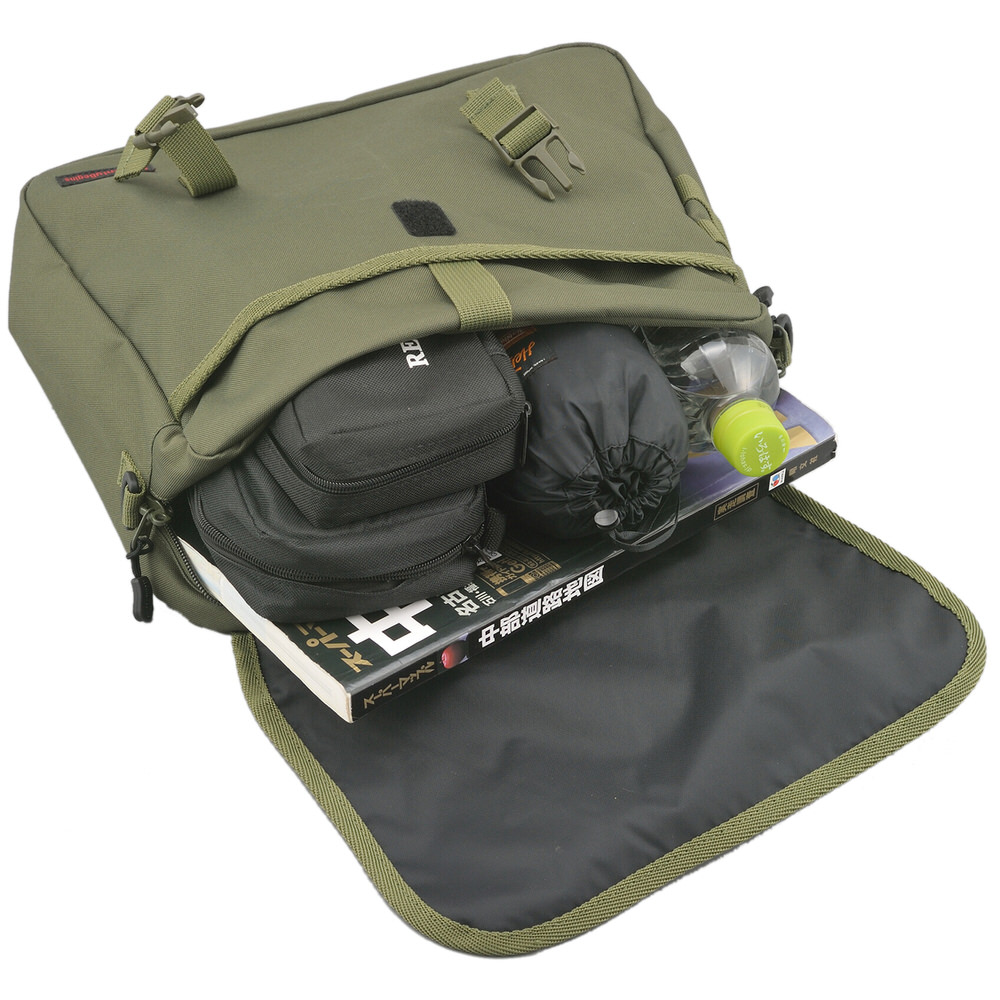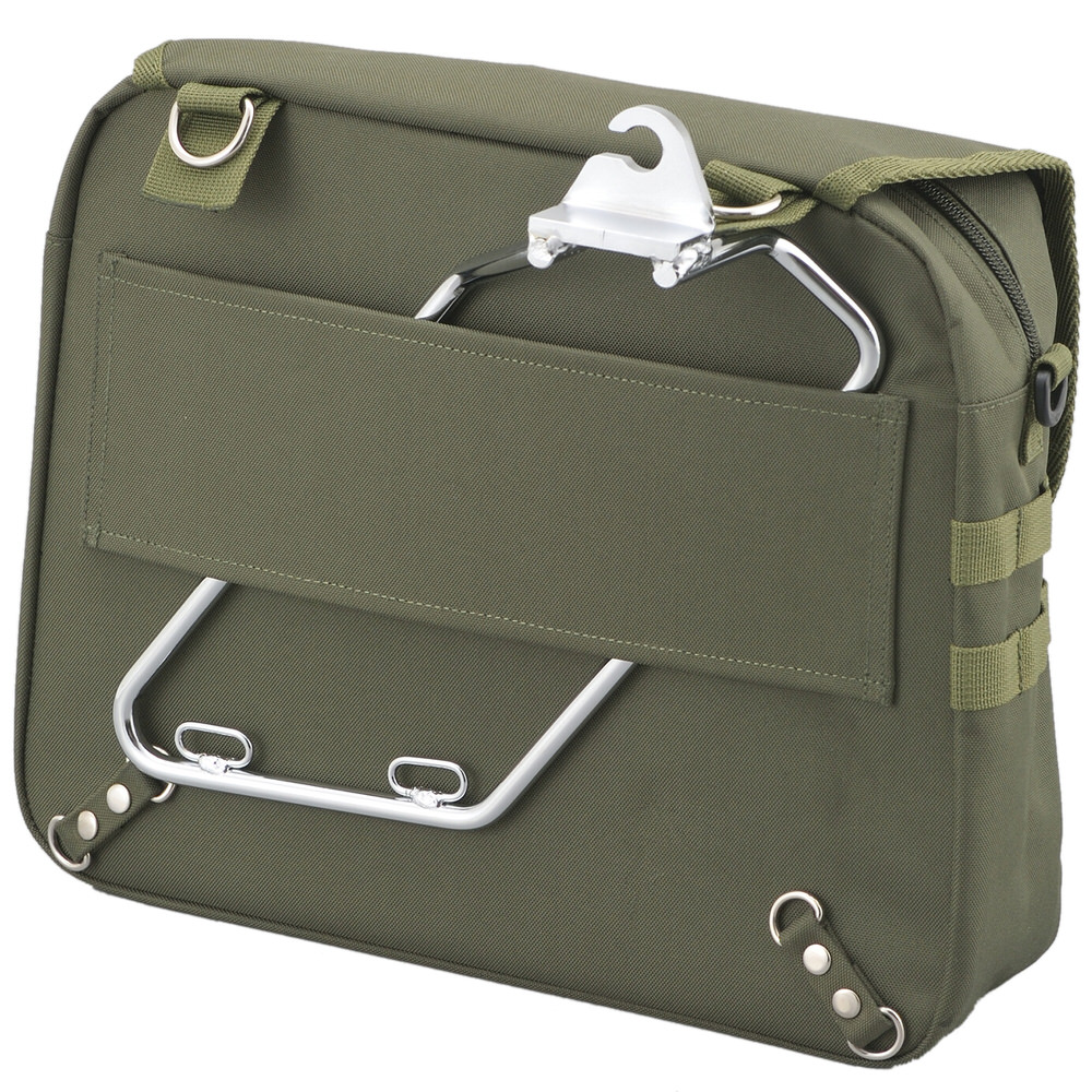 安心のファスナー仕様小分けに便利フロントポケット A4ノート程度が収納可能メイン荷室には、リングファスナーを採用。盗難抑制に別売のダイヤルロック(16835)使用可能。簡単開閉ワンタッチバックル背面には脱着可能な芯材を採用2種類の固定ベルトを付属させ汎用性の高い固定が可能。1狭いすきまでも通しやすい!アメリカン等の、リアフェンダーとシートレールのすきまが狭い車種に最適。2スマートな固定が可能。少ないスペースでもテープが通れば車体フレームやデイトナ製ハンガー(別売)への固定も可能。容量:約10L。最大積載重量:2kg。サイズ:縦280×横350(下)-320(上)×厚み100mm。※取り付けには、別売のサドルバッグサポートまたは市販の巻き込み防止バーとの同時装着が必要です。※汎用性の高い装着方法を採用しておりますが、車種や車両の仕様によっては装着ができない場合があります。