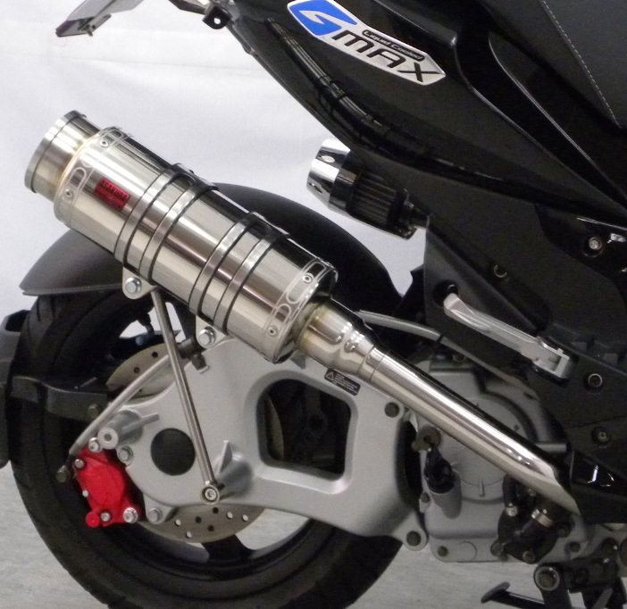 ■受注生産商品となっており、商品手配後 2週間程度入荷にお時間を頂きます。■※平成22年4月1日より施行された認証制度に適合する認証マフラーではありません。ご理解の程よろしくお願い致します。オールステンレス製でエキパイからサイレンサーまでバフ仕上げを施しています。ビッグスクーターにマッチするよう極太のエキパイ60mm径、サイレンサー110mm径の仕様で、非常にバランスのとれた仕上がりなっています。性能面は、低中速を落とすことなく高回転でスムーズに回り扱いやすい設定になっています。サイレンサーは、ストレート構造ではなくフロント部にパンチングを施した作りになっていますので音量は、静かめに押さえられ近所迷惑になる事無く安心して走行できます。音質も耳障りな音でなくバッフル装着時は静かめの低音、バッフル非装着時は心地よい最高の重低音を実現しております。排気音量はバッフル装着時 約89db(法定規制値内音量)、バッフル非装着時 約92db になります。O2センサー取り付け口対応マフラーですのでノーマルと同じ様にO2センサー固定できます。無加工ボルトオンにて装着できますので、必要な工具があれば簡単に取り付けできます。(取り付けに必要なボルト類は全て付属しております。)振動防止のためサイレンサーとエキパイが2分割になる安心設計になっており、耐久性が抜群に高い構造を採用しています。サイレンサーの固定にはサイレンサーバンドを採用し、バフ仕上げを施したステンレス製丸棒で組んだステーを介して固定しておりますので、従来のステーの固定より車体と調和した高級感あふれるマフラーです。