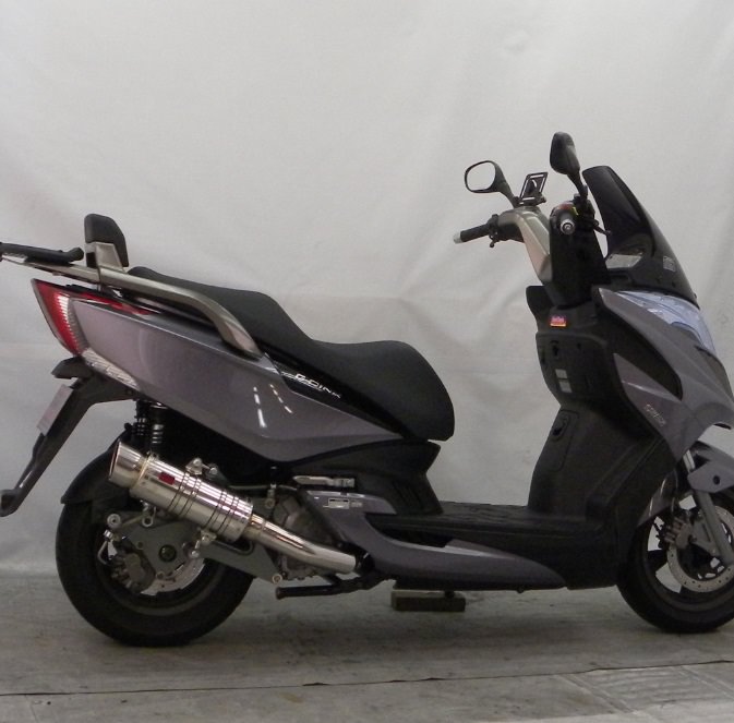 ■受注生産商品となっており、商品手配後 2週間程度入荷にお時間を頂きます。■※平成22年4月1日より施行された認証制度に適合する認証マフラーではありません。ご理解の程よろしくお願い致します。オールステンレス製でエキパイからサイレンサーまでバフ仕上げを施しています。ビッグスクーターにマッチするよう極太のエキパイ60mm径、サイレンサー110mm径の仕様で、非常にバランスのとれた仕上がりなっています。性能面は、低中速を落とすことなく高回転でスムーズに回り扱いやすい設定になっています。サイレンサーは、ストレート構造ではなくフロント部にパンチングを施した作りになっていますので音量は、静かめに押さえられ近所迷惑になる事無く安心して走行できます。音質も耳障りな音でなくバッフル装着時は静かめの低音、バッフル非装着時は心地よい最高の重低音を実現しております。排気音量はバッフル装着時 約89db(法定規制値内音量)、バッフル非装着時 約92db になります。O2センサー取り付け口対応マフラーですのでノーマルと同じ様にO2センサー固定できます。無加工ボルトオンにて装着できますので、必要な工具があれば簡単に取り付けできます。(取り付けに必要なボルト類は全て付属しております。)振動防止のためサイレンサーとエキパイが2分割になる安心設計になっており、耐久性が抜群に高い構造を採用しています。サイレンサーの固定にはサイレンサーバンドを採用し、バフ仕上げを施したステンレス製丸棒で組んだステーを介して固定しておりますので、従来のステーの固定より車体と調和した高級感あふれるマフラーです。
