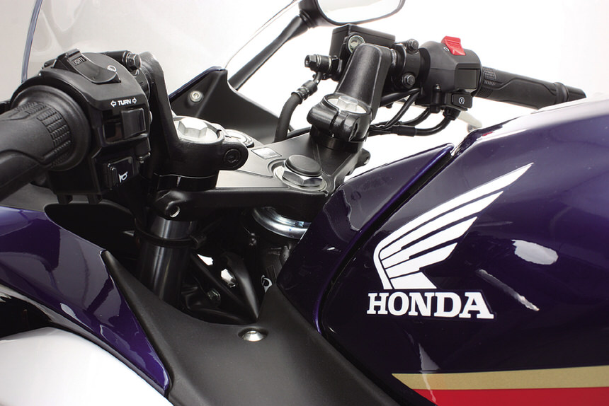 ※ハリケーン社セパレートハンドルとの同時装着は不可アルミ合金削り出しポリッシュアルマイトセパレートハンドル車用ノーマルハンドルの下に挟みつけてポジションアップケーブル・ブレーキホース等はノーマルのままで取付できます。11mmアップ