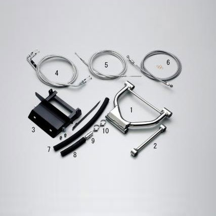 【キット内容】1、エンジンハンガー2、トルクロッド3、フェンダーレスBOX4、スロットルケーブルW 150mmロング(HB6449M)5、パーキングブレーキケーブル 200mmロング(HB6388M)6、リアブレーキホース 150mmロング(HB7P235S)7、ラジエターホース/長8、ラジエターホース/短9、ホースジョイント10、ホースバンドメインスタンド不可エアクリーナーノーマルOKリフレクターノーマル不可プラグコードの延長をおすすめします。(別売)延長プラグコード・・・200mmロング HD1326
