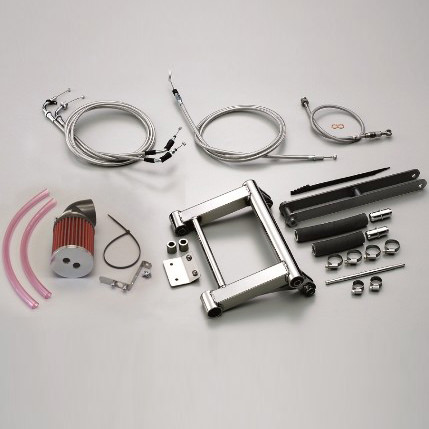 ※画像中エアクリーナーは別売りとなります。ご注意ください。【キット内容】1、エンジンハンガー2、リンクロッド3、スロットルケーブルW 150mmロング(HF1020M-01… HB6560M) (HF1021M-01…HB6579M)4、パーキングブレーキケーブル 100mmロング(HB6561M)5、リアブレーキホース ジョイント~キャリパー 80mmロング(HB7J060S)6、ラジエターホース/長7、ラジエターホース/短8、ホースジョイント9、ホースバンド/大10、フューエルホースジョイント11、ホースバンド/小12、ナンバープレートホルダーメインスタンド不可エアクリーナー不可リフレクターノーマル不可