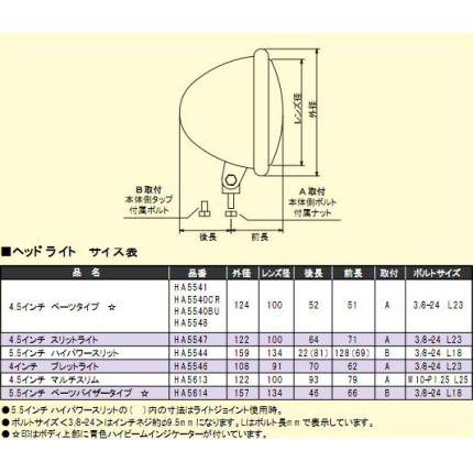 ボトムマウントタイプでスチール製クロームメッキ。バルブ組込み。配線コードにはH4カプラ付。PH7 ハロゲンバルブ 12V35/35W