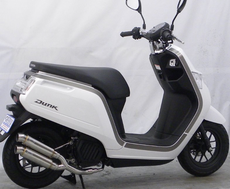 トミックツインマフラーは、ビックスクーター界で主流になりはじめたサイレンサーを短くした、最先端のドレンドマフラーです。