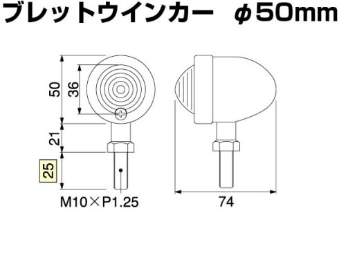 ※シングル球・ダブル球。※商品画像はクリアレンズですが実際の商品はオレンジレンズとなります。ご注意くださいませ。ステムマウント ブレットウインカーキット Φ50mm オレンジレンズオレンジ=オレンジレンズにクリア球組込み。スチール製クロームメッキハリケーン社ウインカーは保安基準による正面から見た灯光部の面積7平方センチ以上の規定をクリアしています。12V15W