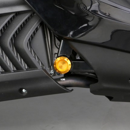 ※ラジエター横にあるフレームのゴムキャップと交換するだけで取り付け可能。ラジエター横に見えるフレームのゴムキャップをアルミ削り出しに交換するワンポイントアクセントアイテムです。アルミ削り出し製。アルマイト仕上げ。2個1セット。Oリング4本付属。