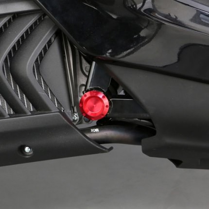 ※ラジエター横にあるフレームのゴムキャップと交換するだけで取り付け可能。ラジエター横に見えるフレームのゴムキャップをアルミ削り出しに交換するワンポイントアクセントアイテムです。アルミ削り出し製。アルマイト仕上げ。2個1セット。Oリング4本付属。