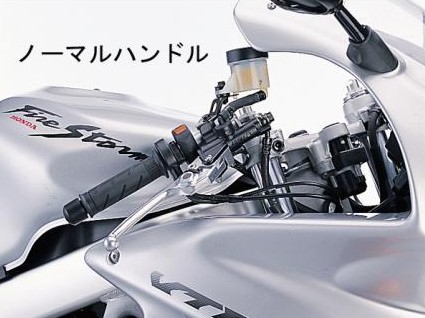 ※ハンドルアップスペーサー(HB0643A)との同時装着は不可。ジュラルミン削り出し セパレートハンドル手首が疲れないライディングポジションに。長時間のライディングでは特に疲れの違いを体感できます。ホルダーはマシニング精密加工によるジュラルミン削り出しで、軽量・高剛性を兼ね備えたこだわりの逸品です。ノーマルのケーブル・ブレーキホース等のままで取付できます。●タンク・カウル干渉しない各車種専用設計。●ハンドルスイッチ固定穴加工済で、取付時間を短縮。●2ピース対応なのでハンドルバーのみの交換も可能。補修用パーツについてはお問い合わせください。バーエンド位置で55mmアップ(~00年比) 40mmアップ(01年~比)。