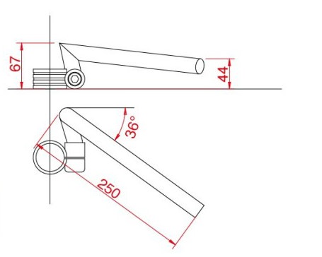 ※画像中のハンドルホルダーは別売りです。別途ハリケーン製セパレートハンドル用ホルダーお買い求めください。セレーション部を中心軸に約8°ずつの調整が可能です。M12×25×P1.25ソケットボルト付調整可能範囲が大きい為、グリップ部分が水平にもっとも近い位置・左右のホルダーが平行、条件時の計測値となります。※計測値にバーエンドキャップは含まれていません。※実際の取付の際はフロントフォークキャスター角の影響を受ける為、目安としてご参考ください。