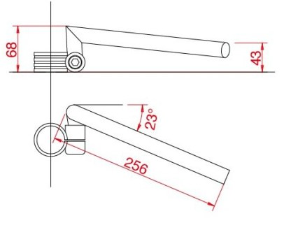 ※画像中のハンドルホルダーは別売りです。別途ハリケーン製セパレートハンドル用ホルダーお買い求めください。セレーション部を中心軸に約8°ずつの調整が可能です。M12×25×P1.25ソケットボルト付調整可能範囲が大きい為、グリップ部分が水平にもっとも近い位置・左右のホルダーが平行、条件時の計測値となります。※計測値にバーエンドキャップは含まれていません。※実際の取付の際はフロントフォークキャスター角の影響を受ける為、目安としてご参考ください。