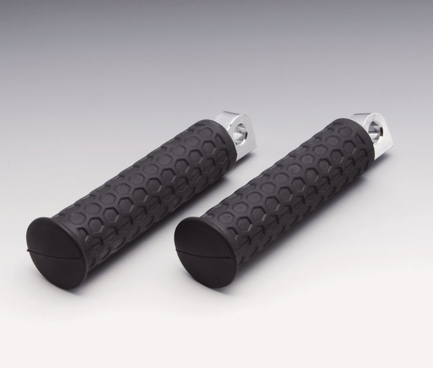 ハニカム状にパンチングされたフートペグ。ハーレーのほとんどのモデル(マウント部がコの字型)に装着可能です。※11年~XL1200X/V/C・FXSへの装着は標準状態ではできません。