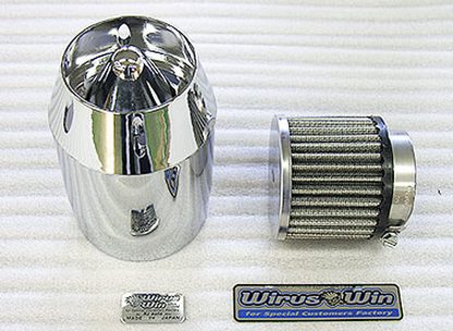 ■受注生産商品となっており、商品手配後 2週間程度入荷にお時間を頂きます。■※※ボアアップ、駆動系、抜けの良いマフラーに変更などの改造をされている場合は、キャブレターのセッティングが必要となることがあります。また、さらなるパワーアップを望む方にもキャブレターのセッティングは必要です。ボディはプラスチック製でクロムメッキを施しております。インテーク部分はステンレス製バフ仕上げで、取付ステーには強度の強い12mm径のステンレス丸棒を採用し、幾度ものテストを重ね完成させていますので、強度、耐久性はバッチリです。ノーマルエアークリーナーから、簡単にボルトオンで付け替えできます。ローダウン車両にも対応いたします。クリーナーにはパワーフィルターが装備されています。従来はパワーフィルターにあわせて、キャブレターのセッティングを行わなくてはいけませんでしたが、この商品は必要吸気量にあわせて一定の範囲内で無段階に調整できますので、キャブレターを取り外したりする作業が必要ありません。還元パイプ対応ということもあり、簡単にセッティング出しやすく、パワーアップが計れます。