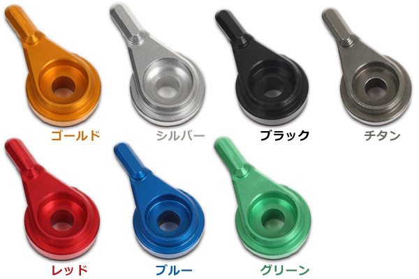 ※取り付け車種により純正レバーに付属する部品をご使用いただく場合がございます。※レバー交換後は必ず異常が無いか確認を行ってください。※モニターの環境等の理由により画像の色と実物の色が若干異なって見える場合がございます。※画像はイメージです。※この商品は予告なしに価格や仕様を変更する場合がございます。高強度アルミニウム合金素材6061を精密加工したレバー本体にアルマイト処理を行うことにより高級感を与え、高精度を実現しました。純正マスターシリンダー、クラッチレバーホルダーに装着できます。握りやすい形状により操作に必要な力を低減。6段階アジャスターにより最大約28mmまで調整が可能となっており、好みのレバー位置にセッティング可能ですので手の小さな女性でも快適な操作性を確保出来ます。※アジャスター(調整つまみ)は写真の7色よりお選びいただけます。商品を発送する際に補修部品のリストを同梱させていただいておりますので、破損や日焼け等があった場合の部品単位での販売も可能となっております。
