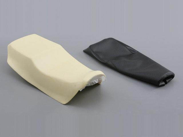 ※純正同等形状:ローダウンシートではありません。※ シートスポンジは消耗品です。10年乗って劣化したシートを交換してリフレッシュしましょう!※ この商品は純正シートベースが別途必要です。(シート張替えショップ)での張替施工をおすすめします。※ 単純に交換する(replace)だけでなく、一部修正(modify)して進化させる意味です。※純正シートベース張替えタイプ。高密度シートウレタンとシート表皮のセット商品です。※ライダー側とタンデム側上部がディンプルメッシュ表皮です。※取り付けには、純正シートベースおよび純正取付金具を使用します。※防水対策をしていますが、完全防水ではありません。高密度ウレタンを贅沢に使いながら純正形状にこだわったリプレイス系ハイパフォーマンスシート!愛車を大事に永く乗るライダーへ朗報の純正シートベース張替え用(RIPMOシート)。劣化したスポンジを高密度スーパーウレタンへ交換して新車以上の乗り心地を実現します。純正シート形状は大きく崩さずにブレーキング時の前ずれを防止する形状へライトチューンして快適性と操安性を両立しました。高密度スーパーウレタンを採用跨った時にしっかりとしたストローク感がある高密度スーパーウレタンを採用。このウレタンの硬さ、弾力性がライダーの体重をシート全体で受けとめることで長時間座っていても疲れにくい乗り心地を確保します。純正同等形状純正シート形状は大きく崩さずにブレーキング時の前ずれを防止する形状へライトチューンして快適性と操安性を両立しました。(RIPMO)=replace(リプレイス)&modify(モデファイ)を融合した造語。
