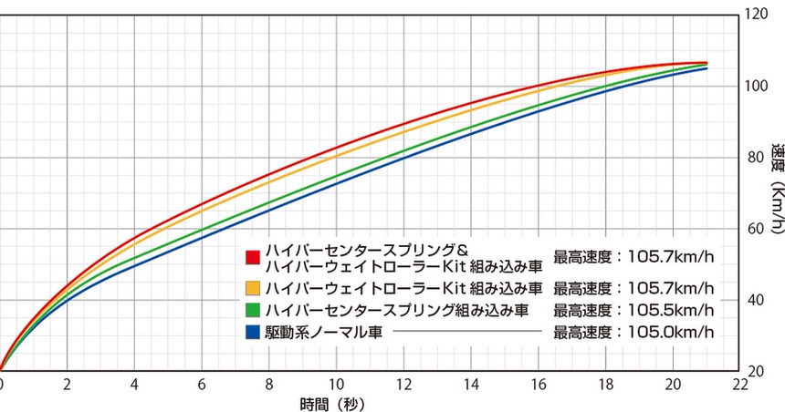 ■受注生産商品となっており、商品手配後 2週間程度入荷にお時間を頂きます。■※車体型式:EBJ-JF56 に適合します。その他の型式には適合しませんのでご注意下さい。社外品マフラーを装着した際に発生するトルク不足を解消し、さらにパワーアップさせる駆動系Kitをご用意しました。ノーマルのウエイトローラーと交換するだけでゼロ発進から最高速までズムーズに加速します。絶妙な設定で高速性能ダウンする事無く低速を強化します。回転の落ち込みムラが無く、細かいアクセル操作で前に出たい時にすっと車体が反応してくれますので町中のすり抜けには抜群の効果を発揮します。WirusWin製ハイパーウェイトローラーKitと純正ウェイトローラーとの速度比較グラフでは、WirusWin製ハイパーウェイトローラーKitの方がゼロ発進時の速度の立ち上がりが抜群に良く、その差が最高速到達まで続き、結果、最高速到達時間が大幅に短縮されている事が分かります。ハイパーウエイトローラーKitは社外品マフラーに合う基本的なキットです。社外品マフラーを取り付け、基本セッティングが出ていない状態から駆動系をベストに合わすのはかなりの労力を費やしてしまいます。まずはハイパーウエイトローラーKitを取り付け、良い状態からベストセッティングに合わせる事をオススメします。また、ノーマル純正マフラーでも同様の効果を見込めます。※ハイパーウェイトローラーKitの取り付けには専用工具や専門知識等が必要になりますので、ウイルズウィン商品取扱いショップ等、整備に精通している方に取り付けを依頼下さい。