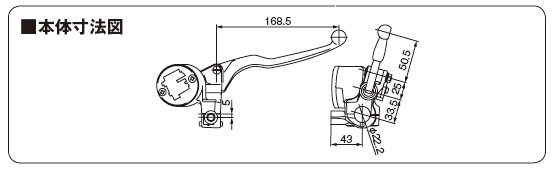 ※ショートレバーはレバーの変形や内部部品の破損の恐れがあるため、絶対に組み込まないでください。レトロ調丸型一体タンクのブレーキマスター旧車ルックに。レトロ感を演出するニッシン製丸型一体式タンクのブレーキマスターシリンダー。70~80年代風のカスタムや、純正のリプレイス品としてどうぞ。ハンドル垂れ角15°用。レバーはアジャスター無し(ストレートレバー)を標準採用。別売の補修用レバー(横型右ブレーキ用)を購入すれば4段階調整(23319等)や6段階調整(62286等)機能が利用可能。ブレーキフルードについてブレーキフルードは長期間の使用により、空気中の水分を吸収し劣化します。(※保管状態でもフルードの劣化は進みます。)ブレーキフルード内の水分が多くなるとブレーキング時の熱で沸騰しやすくなったり、油圧システム内の部品を錆びさせ、ブレーキまたはクラッチの性能低下や予期せぬトラブルを生じる可能性があります。通常使用で2年毎の定期交換が必要です。著しく劣化が見られる場合は、ブレーキフルードの早期交換が必要となります。